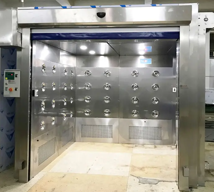 貨淋室是貨物進(jìn)入潔凈室所必須通道,起到氣閥室密閉潔凈室的作用。降低貨物進(jìn)出潔凈區(qū)所帶來的污染問題。在吹淋時(shí)由系統(tǒng)提示讓貨物秩序的完成整個(gè)吹淋除塵過程。